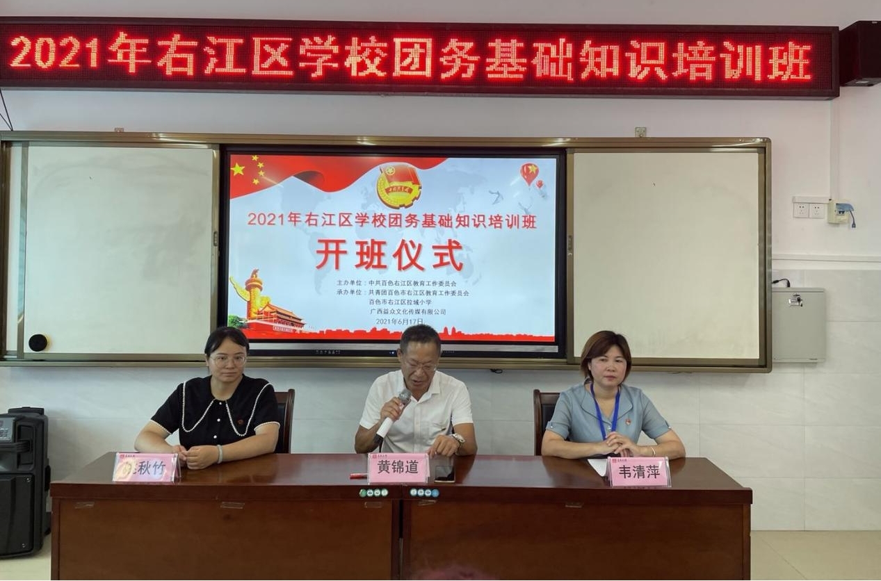 ????????為進(jìn)一步加強(qiáng)右江區(qū)學(xué)校團(tuán)干隊(duì)伍業(yè)務(wù)水平,增強(qiáng)履職盡責(zé)能力,全面提升新任團(tuán)干的業(yè)務(wù)理論、工作技能和創(chuàng)新能力,更好地開展共青團(tuán)工作,近日,百色市右江區(qū)教育局主辦,百色市右江區(qū)共青團(tuán)、廣西益眾文化傳媒有限公司、百色市拉域小學(xué)聯(lián)合承辦了2021年右江區(qū)學(xué)校團(tuán)務(wù)基礎(chǔ)知識(shí)培訓(xùn)班,來自右江區(qū)37所中小學(xué)、幼兒園的團(tuán)干參加本次培訓(xùn)。