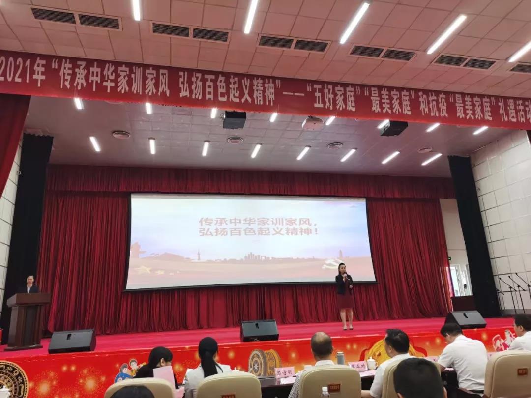 ????????為弘揚中華民族家庭美德、樹立良好家風、激勵抗疫精神,落實全國婦聯(lián)、自治區(qū)婦聯(lián)關于開展尋找“最美家庭”活動精神。4月30日,由百色市婦聯(lián)、市文明辦、市總工會、市教育局聯(lián)合舉辦,廣西益眾文化傳媒有限公司承辦的2021年“傳承中華家訓家風?弘揚百色起義精神”——“五好家庭”“最美家庭”和抗疫“最美家庭”禮遇活動儀式在右江區(qū)禮堂舉行。來自2020年“五好家庭”“最美家庭”和抗疫“最美家庭”代表、“最美家庭”禮遇愛心單位代表以及百色市市直機關、企事業(yè)單位和社會各界代表等共計200多人參加活動。