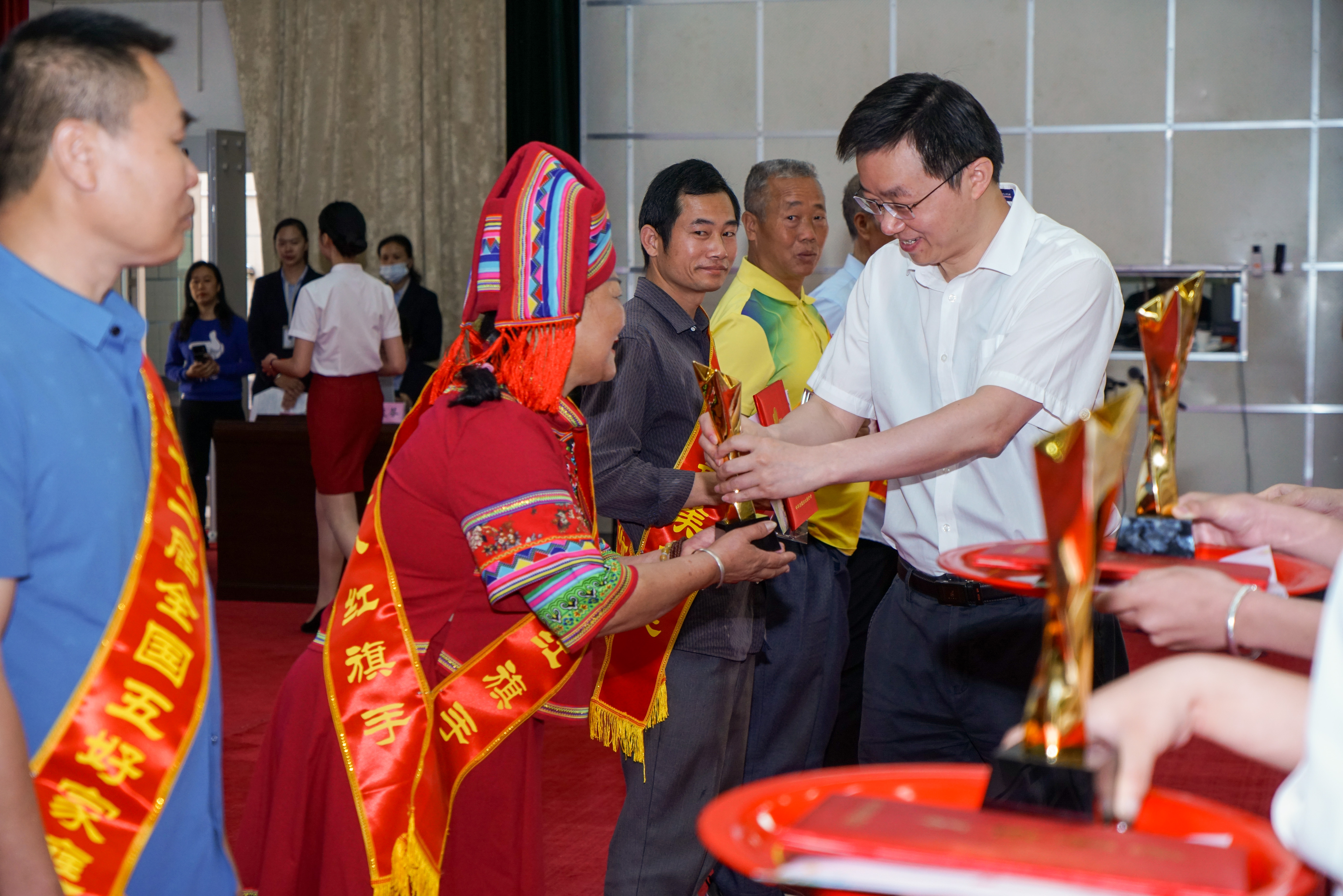 ????????活動中,市委常委、市人民政府副市長周付生及市婦聯(lián)、市文明辦、市總工會、市教育局領導依次上臺,向全國、自治區(qū)、市級“三八紅旗手標兵”“三八紅旗手”“巾幗建功標兵”“巾幗建功先進個人”“維護婦女兒童權益先進個人”等典型代表進行慰問,為2020年“五好家庭”“最美家庭”和抗疫“最美家庭”發(fā)放證書、獎杯及禮遇大禮包,并向禮遇愛心單位頒發(fā)牌匾。
