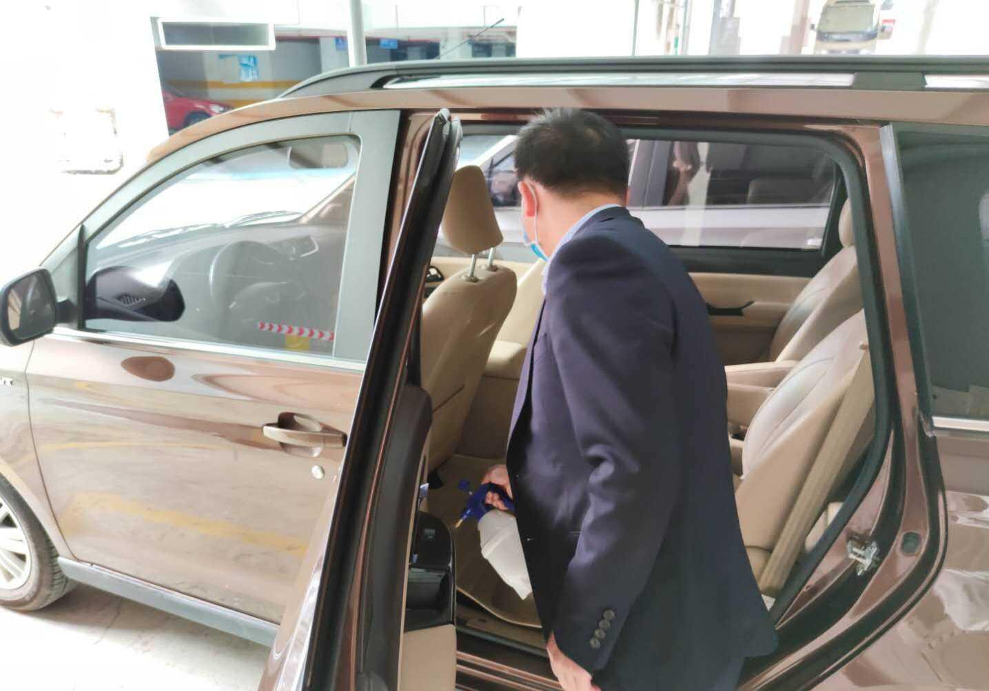 出車前員工對(duì)車輛進(jìn)行消洗