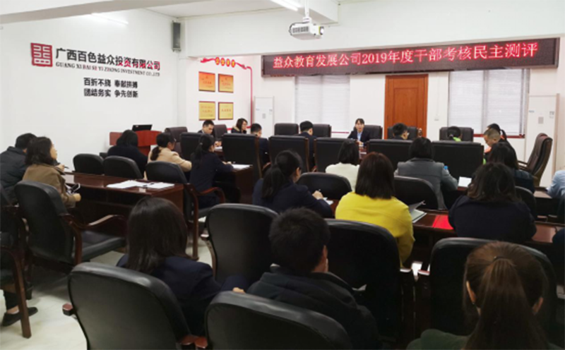 2019年12月31日,益眾教育公司召開2019年度干部民主測評考核會議,對益眾托管公司、益眾后勤公司主管以上干部進行年度考核民主測評,公司全體管理人員參加會議。會議強調了開展干部民主測評考核工作的重要性,要求客觀公正的對測評對象的德、能、勤、績、廉等方面進行據(jù)實評價,嚴格遵守考核紀律,營造風清氣正的考核工作環(huán)境。