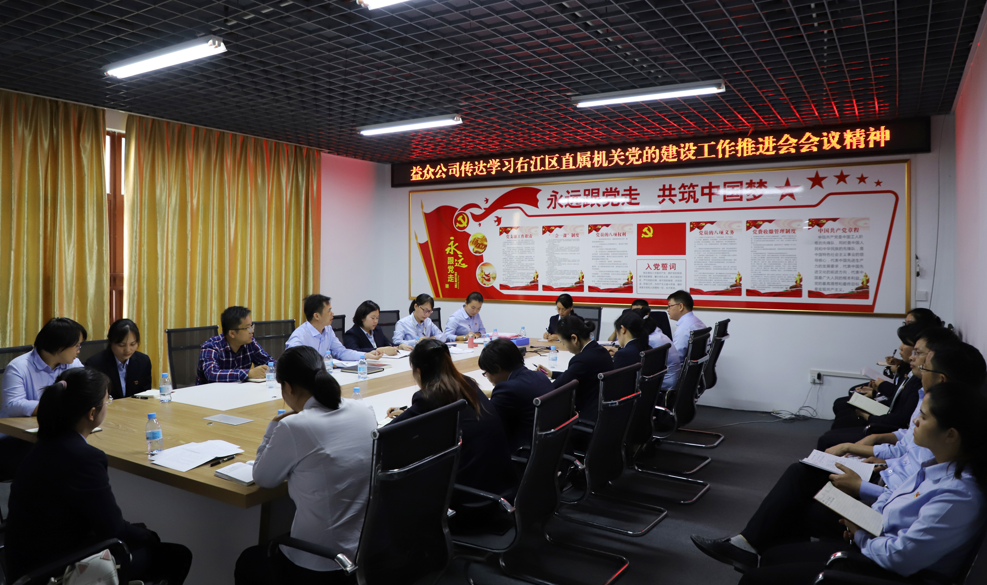 ????????近日,益眾公司黨支部召開(kāi)專(zhuān)題會(huì)議,傳達(dá)學(xué)習(xí)右江區(qū)直屬機(jī)關(guān)黨的建設(shè)工作推進(jìn)會(huì)會(huì)議精神。會(huì)上,傳達(dá)學(xué)習(xí)了《關(guān)于落實(shí)右江區(qū)機(jī)關(guān)黨的建設(shè)工作會(huì)議上反饋區(qū)直屬機(jī)關(guān)黨組織存在問(wèn)題整改工作的通知》《右江區(qū)8個(gè)領(lǐng)域黨支部標(biāo)準(zhǔn)化規(guī)范化建設(shè)重點(diǎn)任務(wù)清單》《關(guān)于推行一把手權(quán)力清單和負(fù)面清單制度的實(shí)施意見(jiàn)》《關(guān)于扶貧領(lǐng)域腐敗和作風(fēng)問(wèn)題典型案例的通報(bào)》等文件。