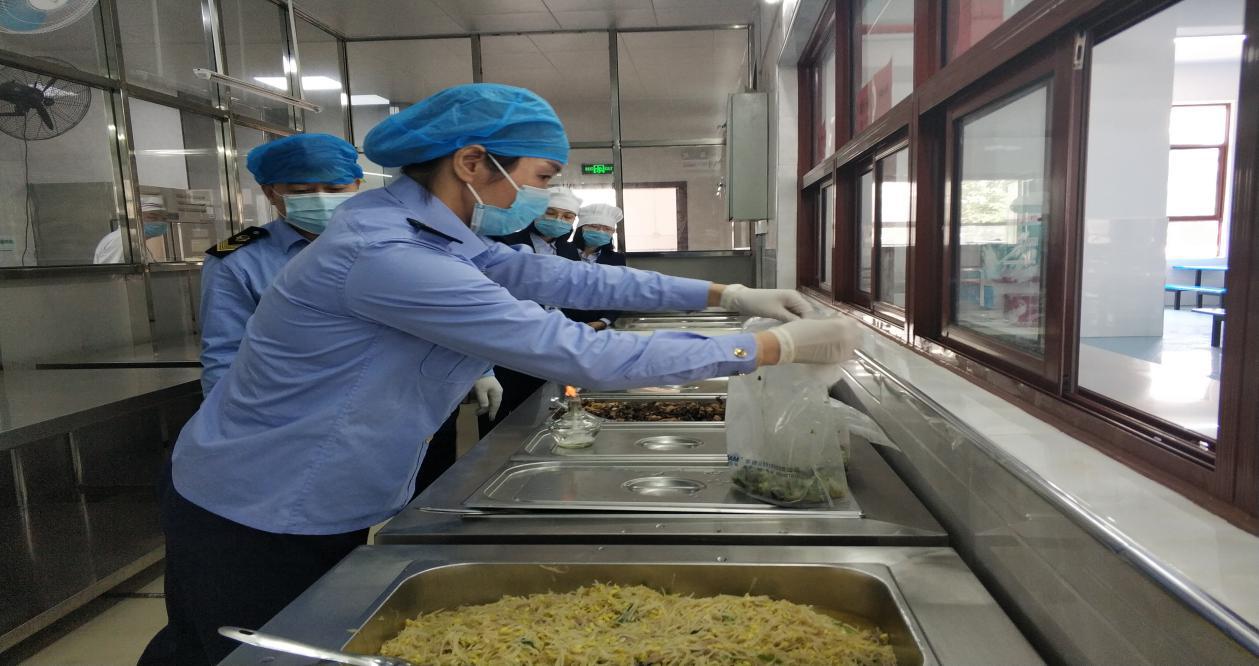 檢查組對(duì)當(dāng)日加工食材進(jìn)行安全抽樣檢測(cè)封存
