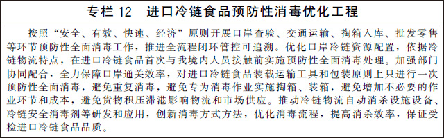健全檢驗檢測檢疫體系。適應(yīng)不同農(nóng)產(chǎn)品檢驗檢測檢疫要求,完善覆蓋從種養(yǎng)殖、加工到銷售終端全鏈條以及冷鏈物流包裝、運載工具、作業(yè)環(huán)境等全要素的檢驗檢測檢疫體系。加強檢驗檢測檢疫設(shè)施建設(shè)和設(shè)備配置,完善應(yīng)急檢驗檢測檢疫預(yù)案,實行閉環(huán)式疫情防控管理,防范非洲豬瘟、新冠肺炎、禽流感等疫情擴散風(fēng)險,提高重大公共衛(wèi)生事件等應(yīng)急處置能力。