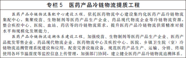 完善醫(yī)藥產(chǎn)品冷鏈物流設(shè)施網(wǎng)絡(luò)。鼓勵醫(yī)藥流通企業(yè)、藥品現(xiàn)代物流企業(yè)建設(shè)醫(yī)藥物流中心,完善醫(yī)藥冷庫網(wǎng)絡(luò)化布局及配套冷鏈設(shè)施設(shè)備功能,提升醫(yī)藥產(chǎn)品冷鏈全程無縫銜接的信息化管理水平。推動醫(yī)藥流通企業(yè)按《藥品經(jīng)營質(zhì)量管理規(guī)范》要求配備冷藏冷凍設(shè)施設(shè)備,支持疾控中心、醫(yī)院、鄉(xiāng)鎮(zhèn)衛(wèi)生院(室)等醫(yī)療網(wǎng)點提高醫(yī)藥產(chǎn)品冷鏈物流和使用環(huán)節(jié)的質(zhì)量保障水平。加強醫(yī)藥物流中心與冷鏈末端的無縫銜接,鼓勵發(fā)展多溫共配、接力配送等模式,探索發(fā)展超低溫配送,構(gòu)建廣覆蓋、高效率、低成本、安全可靠的醫(yī)藥產(chǎn)品冷鏈物流網(wǎng)絡(luò)。