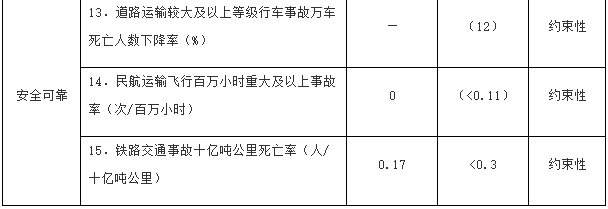 安全保障更加可靠。交通設(shè)施耐久可靠、運(yùn)行安全可控、防范措施到位,安全設(shè)施完好率持續(xù)提高??绮块T、跨領(lǐng)域的安全風(fēng)險(xiǎn)防控體系和應(yīng)急救援體系進(jìn)一步健全,重特大事故發(fā)生率進(jìn)一步降低。主要通道運(yùn)輸安全和糧食、能源、礦石等物資運(yùn)輸安全更有保障,國際物流供應(yīng)鏈安全保障能力持續(xù)提升。