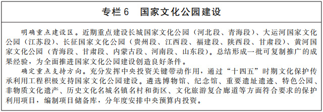 推進國家文化公園建設,生動呈現(xiàn)中華文化的獨特創(chuàng)造、價值理念和鮮明特色,樹立和突出各民族共享的中華文化符號和中華民族形象,探索新時代文物和文化資源保護傳承利用新路徑,把國家文化公園建設成為傳承中華文明的歷史文化走廊、中華民族共同精神家園、提升人民生活品質的文化和旅游體驗空間。加快建設長城、大運河、長征、黃河等國家文化公園,整合具有突出意義、重要影響、重大主題的文物和文化資源,重點建設管控保護、主題展示、文旅融合、傳統(tǒng)利用四類主體功能區(qū),實施保護傳承、研究發(fā)掘、環(huán)境配套、文旅融合、數(shù)字再現(xiàn)五大工程,突出“萬里長城”“千年運河”“兩萬五千里長征”“九曲黃河”整體辨識度。推進優(yōu)質文化旅游資源一體化開發(fā),科學規(guī)劃、開發(fā)文化旅游產(chǎn)品和商品。推出參觀游覽聯(lián)程聯(lián)運經(jīng)典線路,開展整體品牌塑造和營銷推介。