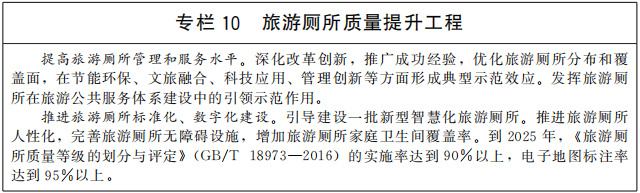 優(yōu)化旅游公共服務設施布局,完善配套設施和功能。適應游客出行方式變化,加大面向散客的旅游公共服務力度。科學規(guī)劃建設旅游景區(qū)停車場、內部交通、便民設施、標識標牌等,合理配置廁所、垃圾桶,建設一批示范性旅游廁所,進一步鞏固旅游廁所革命成果。推動文化和旅游公共服務共建共享,探索建設一批文化和旅游綜合服務設施。推動文化服務進旅游景區(qū),在旅游設施、旅游服務中增加文化元素和內涵,體現(xiàn)人文關懷。充分考慮特殊群體需求,健全無障礙旅游公共服務標準規(guī)范,加強老年人、殘疾人等便利化旅游設施建設和改造,推動將無障礙旅游內容納入相關無障礙公共服務政策。
